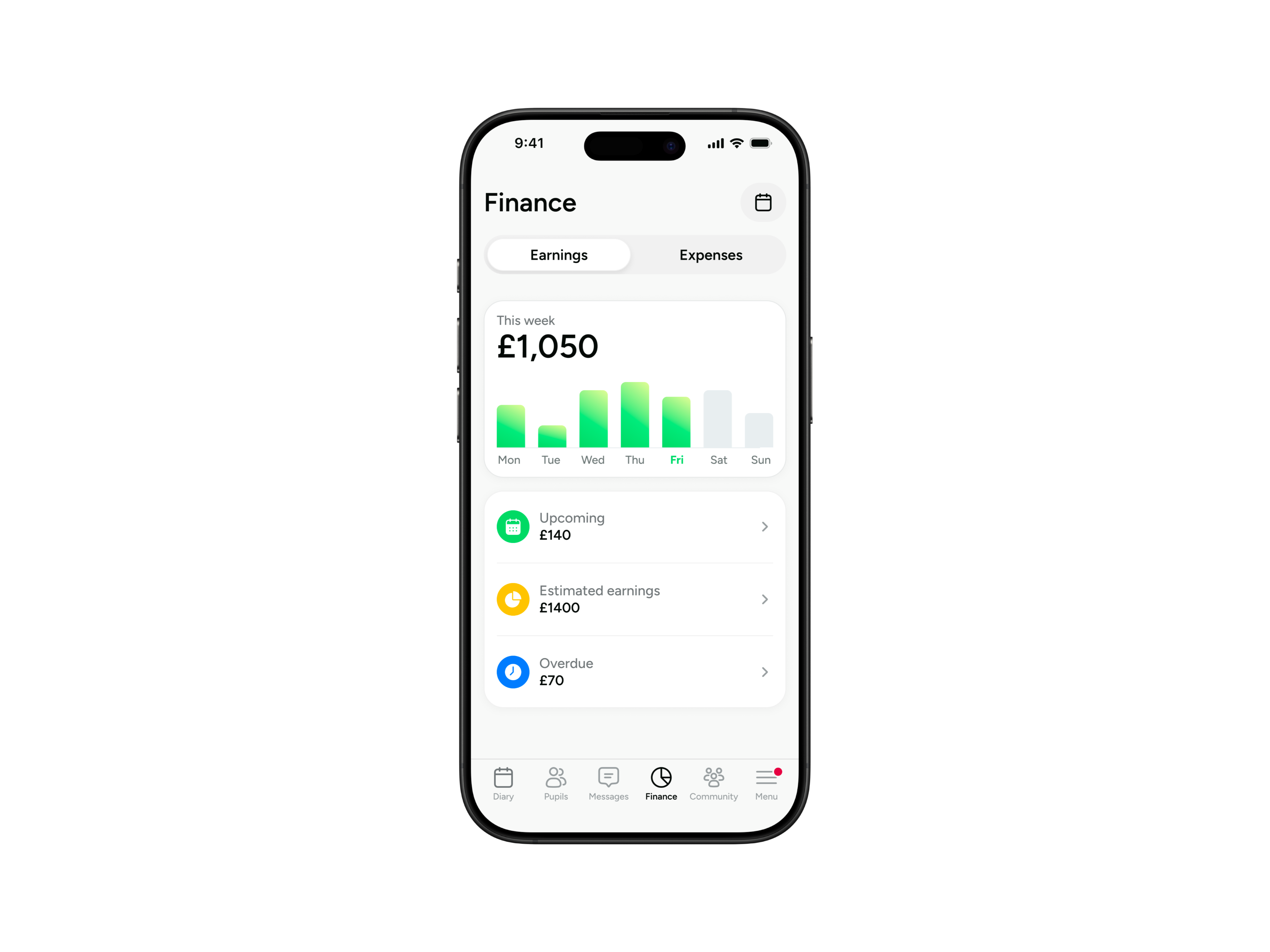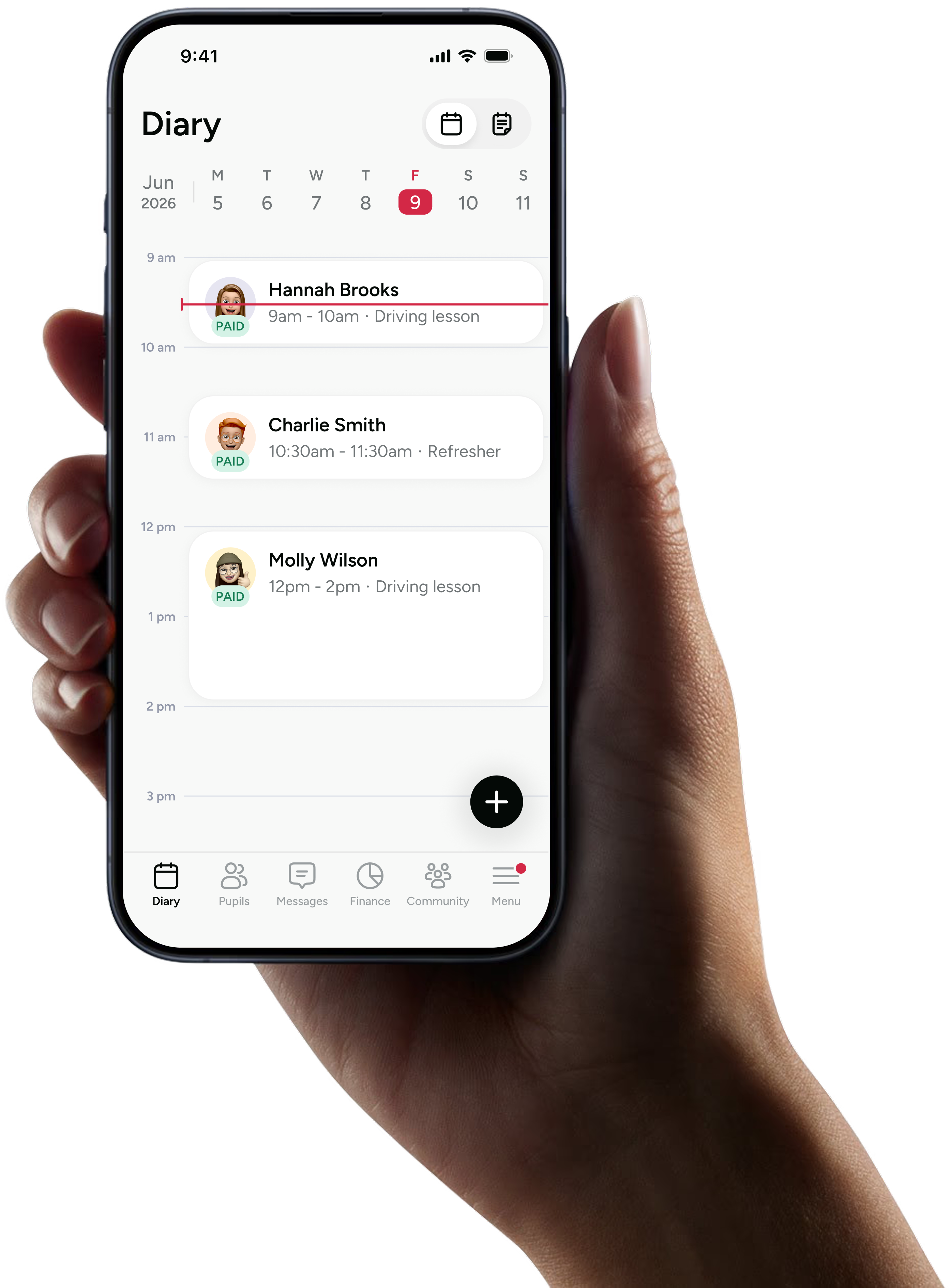 A reliably simple business tool for driving instructors to manage their diary, pupils, progress, and finances in one app.